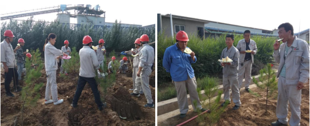 勞動過程中,領(lǐng)導(dǎo)處處帶頭,員工們熱情高漲,選樹苗、挖樹坑、填底土、種樹、澆水、修剪樹枝,干勁十足,整個廠區(qū)變得熱鬧起來。