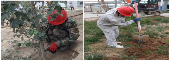 他們對綠化植物進行現(xiàn)場清理,根據(jù)土質(zhì)特點栽種不同的樹木、花卉;對原有綠化部分缺損的樹木進行補種;對已成活花草樹木進行修剪、施肥;將精細化管理貫穿到整個植樹綠化活動中,確保樹木的健康生長和綠化效果。