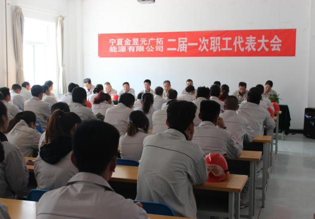 2018年10月16日下午14時,寧夏金昱元廣拓能源公司二屆一次職工代表大會在化工公司調(diào)度室召開。會議由黨總支書記副總經(jīng)理馬建東主持。集團(tuán)公司黨委副書記、工會主席王立軍及各子公司、職能部室職工代表共108人參加了會議。