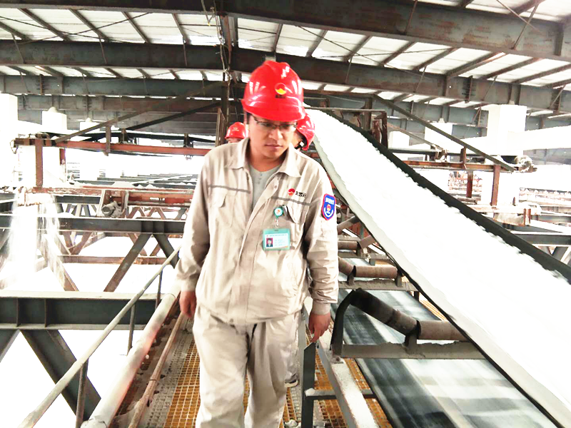 第一次進(jìn)入現(xiàn)場(chǎng),第一次看到鹽漿排入鹽漿桶,通過離心機(jī)神奇般的甩出濕鹽,然而運(yùn)行三臺(tái)離心機(jī)需要四個(gè)人操作,由上到下一直要敲打管道,才甩出鹽通過皮帶運(yùn)輸至棧橋,棧橋操作要同時(shí)經(jīng)過三個(gè)人共同努力,才能將鹽送入散濕鹽倉(cāng),看著潔白如雪的它們,我們的心也怦然心動(dòng)、手握著這潔白圣潔的鹽,像看著偌大的鹽倉(cāng)孕育出了生命一般,望著同事們臉上喜悅的笑容,我們終于無(wú)法自控,大聲吶喊:鹽出來(lái)了!每個(gè)人的眼神都是自豪與興奮。這時(shí),我們的心無(wú)形中已經(jīng)扎根在了這片土地上。是我們共同的努力取得了喜悅的大豐收!