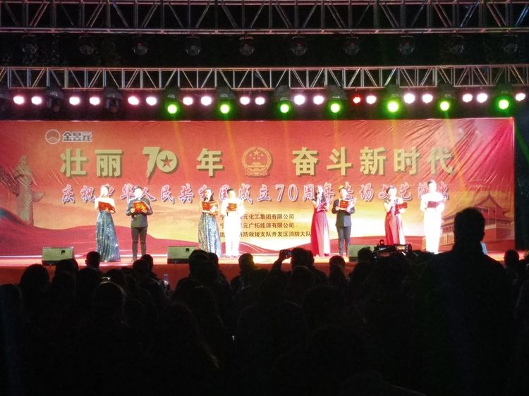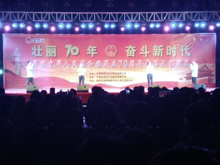 為慶祝新中國成立70周年,寧夏金昱元化工集團攜手固原市開發(fā)區(qū)消防大隊舉辦了以“壯麗70年,奮斗新時代”為主題的文藝匯演晚會,2019年9月26日晚,文藝匯演來到固原片區(qū),固原經(jīng)濟開發(fā)區(qū)管委會,固原市工信局,固原市消防救援支隊開發(fā)區(qū)消防大隊,集團公司、固原片區(qū)相關(guān)領(lǐng)導(dǎo)以及各子公司職工代表,外協(xié)單位共計400余人觀看了本次文藝匯演活動。