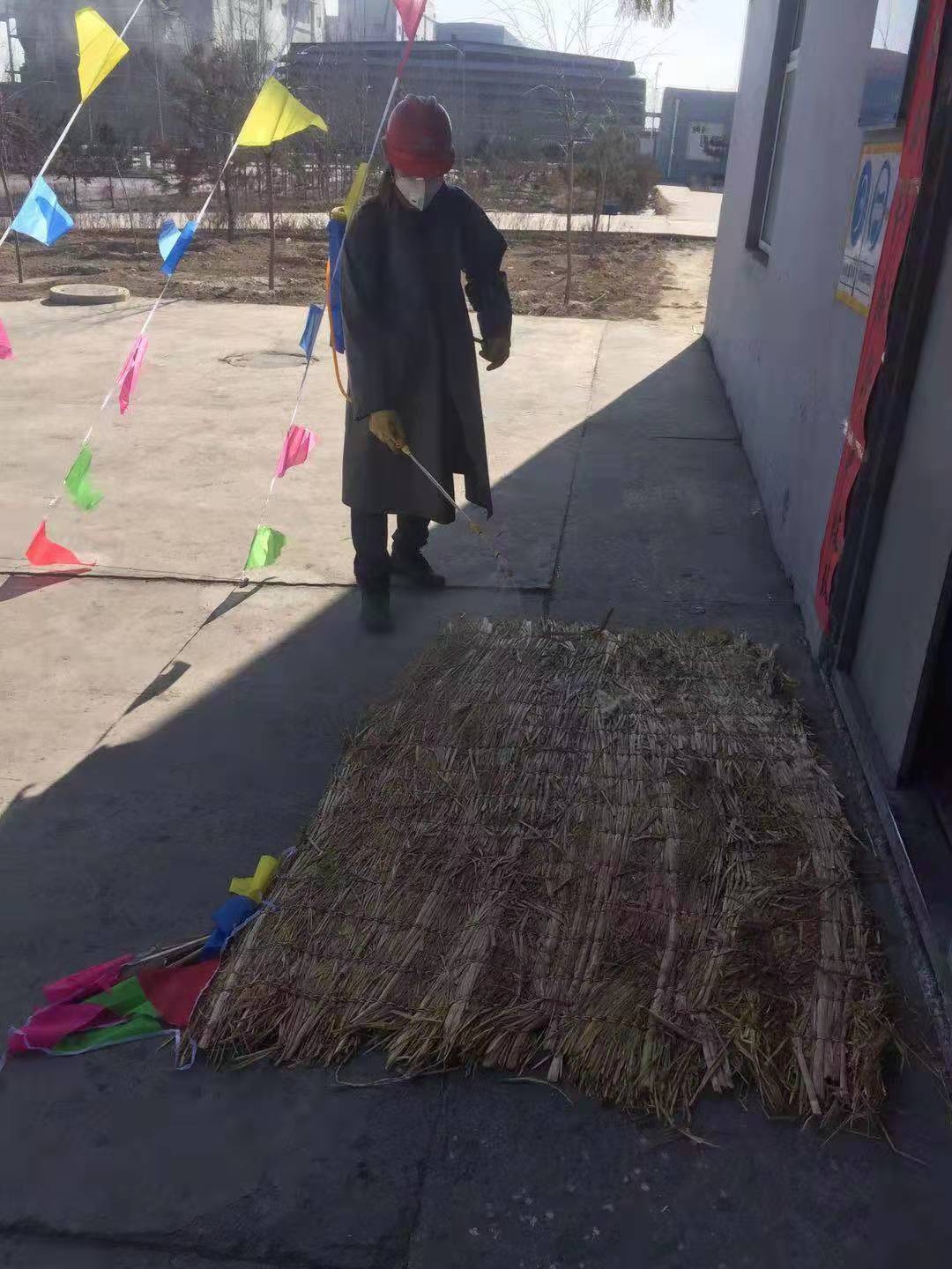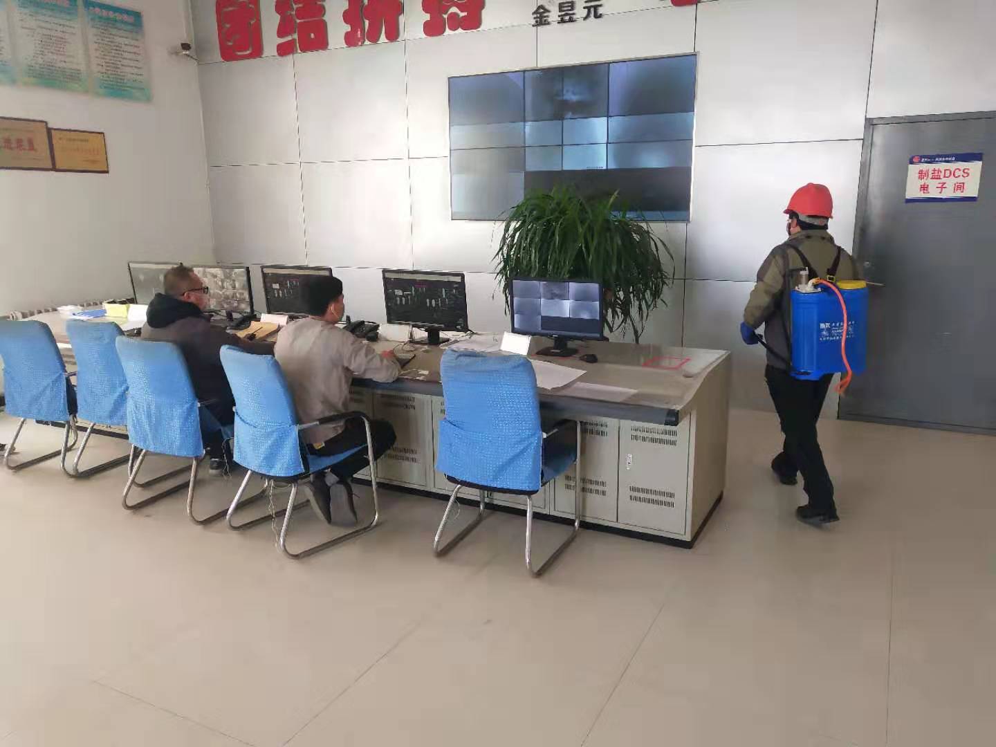 8、各裝置、科每日分別于8-9時(shí)、14-15時(shí)、20-21時(shí)對(duì)辦公區(qū)域、主控室、值班室、操作場(chǎng)所、生產(chǎn)廠房等區(qū)域進(jìn)行消毒工作,并做好相關(guān)記錄。熱力裝置負(fù)責(zé)對(duì)進(jìn)入煤場(chǎng)路口鋪設(shè)草簾或棉質(zhì)墊子,安排人員每隔二小時(shí)向上噴灑消毒水,鹽硝裝置在小廣場(chǎng)護(hù)欄間路口鋪設(shè)草簾或棉質(zhì)墊子,安排人員每隔二小時(shí)向上噴灑消毒水,對(duì)進(jìn)廠車輛輪胎進(jìn)行消毒。