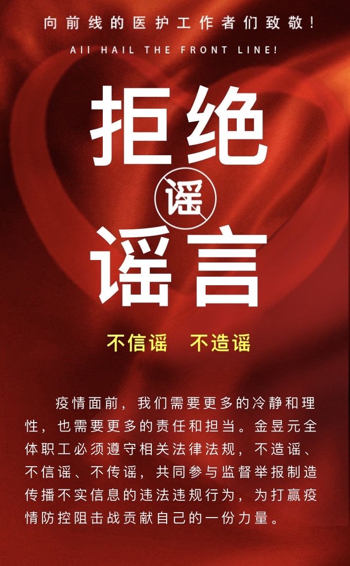 自新型冠狀病毒疫情阻擊戰(zhàn)打響以來,金昱元全體職工團結(jié)一心,眾志成城、抗擊疫情,一股股愛的暖流匯聚成了打贏疫情防控阻擊戰(zhàn)的強大力量。