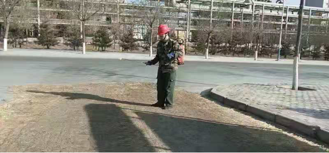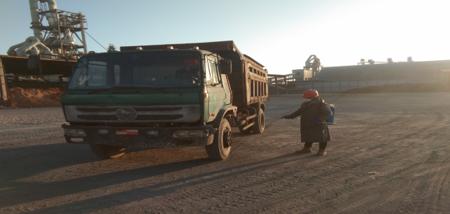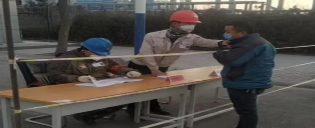 在原料堆場,檢查登記、消毒,全力進行“疫情”防控工作。