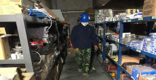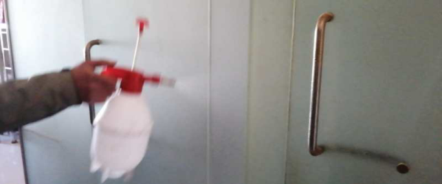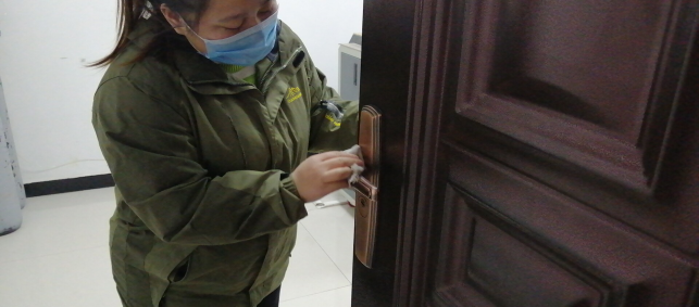 擦拭操作臺、門把手,進(jìn)行衛(wèi)生消毒,工作的有條不紊。