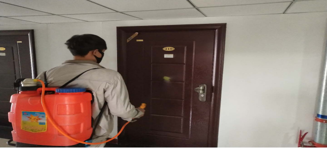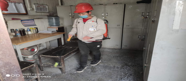對(duì)廠區(qū)衛(wèi)生間消毒。