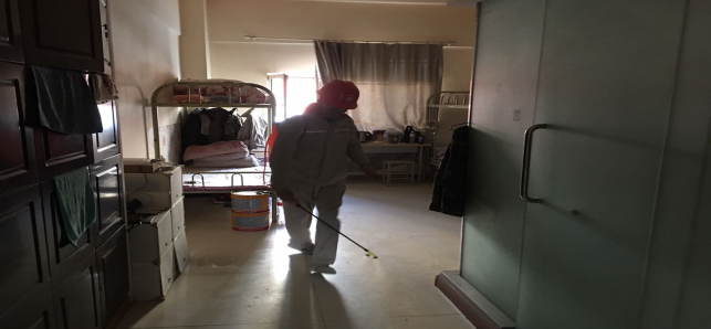 擦拭操作臺(tái)、門(mén)把手,工作的有條不紊。