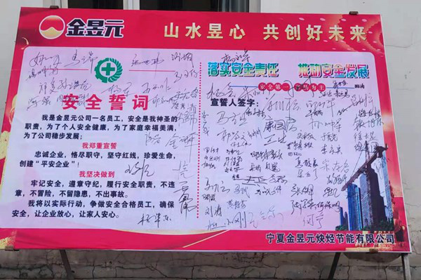 為深入貫徹落實(shí)黨中央、國(guó)務(wù)院關(guān)于安全生產(chǎn)的重大決策部署,牢固樹(shù)立安全發(fā)展理念,以防范化解重大風(fēng)險(xiǎn)、及時(shí)消除安全隱患、堅(jiān)決遏制生產(chǎn)安全事故為目標(biāo),緊緊圍繞“落實(shí)安全責(zé)任,推動(dòng)安全發(fā)展”這一活動(dòng)主題,落實(shí)各級(jí)人員安全職責(zé)、普及安全知識(shí),強(qiáng)化安全生產(chǎn)的責(zé)任意識(shí)和反違章管理,樹(shù)立全員參與意識(shí),把保障安全放到至高無(wú)上的位置,通過(guò)集中開(kāi)展一系列安全生產(chǎn)宣傳教育活動(dòng),將安全目標(biāo)轉(zhuǎn)化為落實(shí)安全生產(chǎn)責(zé)任的自覺(jué)行動(dòng),確保公司安全生產(chǎn)形勢(shì)持續(xù)穩(wěn)定向好。2021年6月3日寧夏金昱元炔烴節(jié)能有限組織各裝置、外協(xié)單位開(kāi)展以“落實(shí)安全責(zé)任、推動(dòng)安全發(fā)展”為主題的安全月宣誓簽名活動(dòng)。