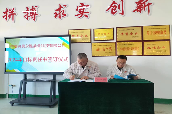 2024年1月8日下午,鹽業(yè)公司組織召開(kāi)了2023年度總結(jié)表彰暨2024年目標(biāo)責(zé)任書簽訂大會(huì)。會(huì)議由總經(jīng)理尚繼榮同志主持,副經(jīng)理、科室長(zhǎng)、裝置長(zhǎng)、受獎(jiǎng)人員及員工代表參加。