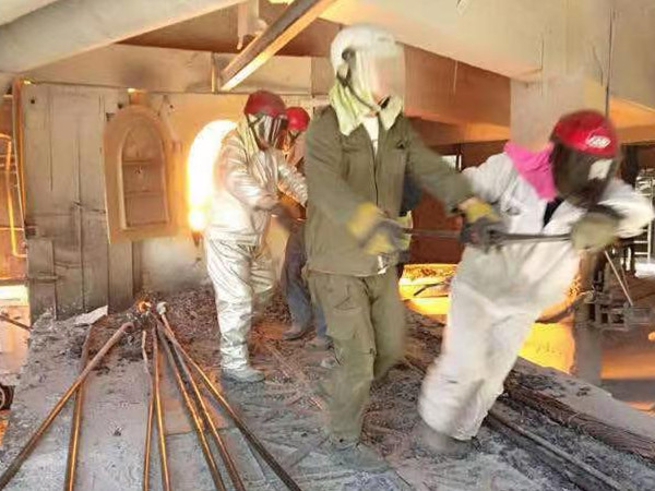 無論是嚴冬還是酷暑,走進資源再生電石出爐現(xiàn)場,就能看見這么一群“全副武裝”的職工,身著隔熱服,頭裹防高溫面罩,手戴著“手燜子”,腳著厚勞保;他們同心協(xié)力,干勁十足得揮舞著手中的鋼釬,鋼釬在爐眼里來回穿梭,將近2000攝氏度高溫的電石緩緩流入電石鍋,這一群人就是電石生產(chǎn)中最可親可愛的“出爐工”。