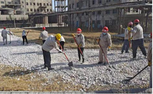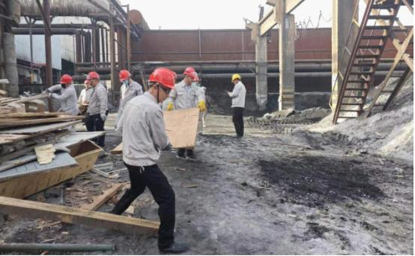 參與勞動的人員發(fā)揚不怕苦、不怕累、不怕臟精神,三五成組、互相配合、分工明確、齊心協(xié)力,搬運雜物木板、揮鍬坪土鏟草、清理鐵皮及塑料板,活動現(xiàn)場熱火朝天。經(jīng)過一上午緊張有序的勞動,99%堿廠房周邊堆砌的雜物、雜草及亂堆放物品都被清理干凈,生產(chǎn)現(xiàn)場環(huán)境恢復(fù)了往日的整潔。