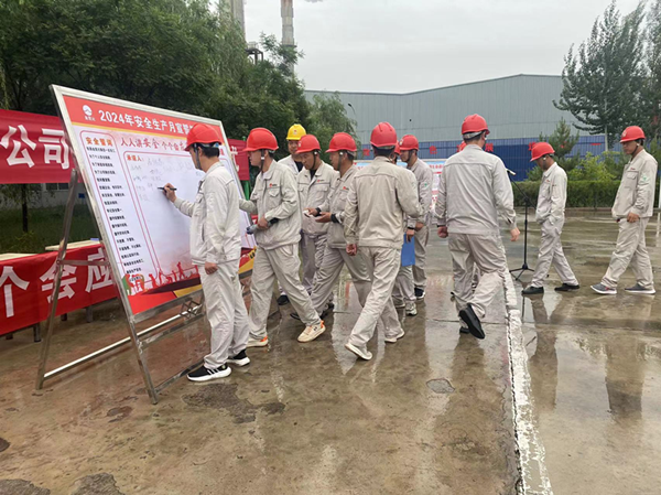 2024年5月29日上午,興昊永勝鹽業(yè)公司組織開展了“安全生產(chǎn)月”啟動(dòng)儀式。啟動(dòng)儀式上,各裝置長(zhǎng)和勞務(wù)外包負(fù)責(zé)人分別作了表態(tài)發(fā)言,主管副經(jīng)理帶領(lǐng)大家做了安全宣誓,總經(jīng)理尚繼榮同志帶領(lǐng)每一位員工鄭重的在安全承諾簽字版上寫下了自己姓名。各裝置長(zhǎng)和勞務(wù)外包負(fù)責(zé)人承諾:“他們會(huì)帶領(lǐng)部門員工,牢固樹立安全紅線意識(shí),認(rèn)真履職崗位職責(zé),嚴(yán)格遵守公司規(guī)章制度,深入排查治理各類安全隱患,杜絕違章和安全生產(chǎn)事故發(fā)生”。