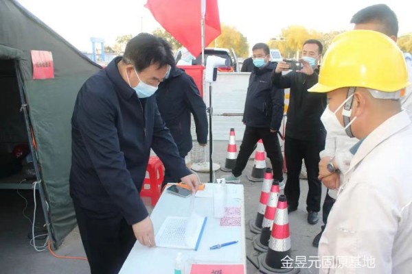 2022年10月18日下午,固原市常務(wù)副市長(zhǎng)任立新一行蒞臨金昱元化工集團(tuán)固原片區(qū)調(diào)研疫情防控工作,集團(tuán)公司副總裁、片區(qū)總經(jīng)理王立軍,副總經(jīng)理馬建東、湯洪冰,綜合管理部部長(zhǎng)劉志江陪同。
