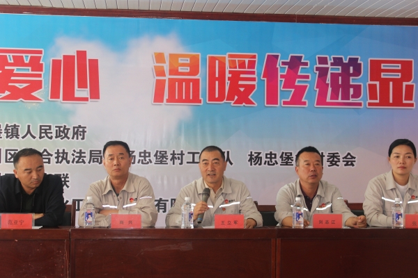 彭堡鎮(zhèn)黨委書記范亞寧、人大主席呂維兵,原州區(qū)綜合執(zhí)法局駐村工作組負(fù)責(zé)人王鑫,楊忠堡村書記童正武;金昱元化工集團(tuán)黨委副書記、工會主席尚興,集團(tuán)公司副總裁、固原基地黨委書記王立軍,固原基地工會主席劉志江、女工主任張靜出席儀式。