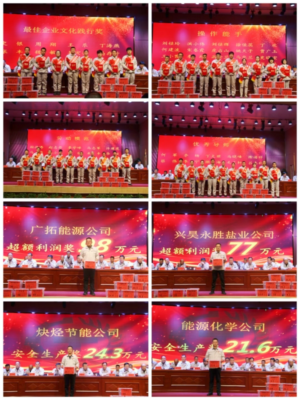 大會對一年來涌現(xiàn)出積極進(jìn)取、勇于開拓、奮發(fā)有為,為公司穩(wěn)定發(fā)展作出突出貢獻(xiàn)的45個先進(jìn)集體和123名先進(jìn)個人進(jìn)行了表彰。對獲得“超額利潤獎”的廣拓能源公司、興昊永勝鹽業(yè)公司、炔烴節(jié)能公司、資源循環(huán)公司、股份公司供應(yīng)部、華峰塑膠公司、能源化學(xué)公司,分別給予97萬元、77萬元、30萬元、29萬元、28萬元、15萬元、8萬元現(xiàn)金獎勵;對獲得“安全生產(chǎn)獎”的炔烴節(jié)能公司、能源化學(xué)公司、廣拓能源公司、興昊永勝鹽業(yè)公司、資源循環(huán)公司、華峰塑膠公司,分別給予24.3萬元、21.6萬元、18萬元、18萬元、14.4萬元、4.5萬元現(xiàn)金獎勵。通過表彰,激勵各單位和全體員工以先進(jìn)集體與個人為榜樣,繼續(xù)發(fā)揚“團(tuán)結(jié)、拼搏、求實、創(chuàng)新”的企業(yè)精神,以更加飽滿的熱情和積極的作風(fēng)投入到企業(yè)發(fā)展建設(shè)中,全力推動2025年各項工作順利開展。