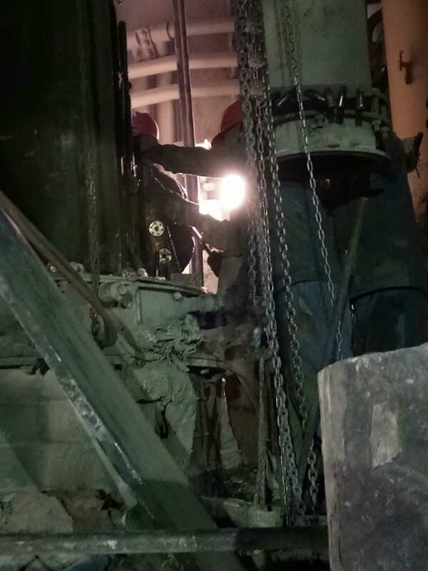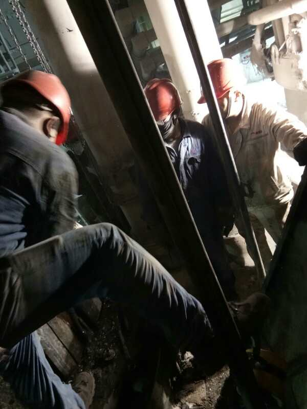高溫酷暑難不倒檢修將士,他們采取早上提前上班,下午錯開高溫時段,工作持續(xù)至晚上的錯峰措施,有條不紊地進行拆除更換工作。盡管如此,大家仍然要承受高溫酷暑的考驗,現(xiàn)場道路上設備轟鳴,管廊架上焊割火花飛濺,員工們揮汗如雨,激情四射,呈現(xiàn)一片催人奮進、如火如荼的檢修景象。拆除下料柱、接觸元件、處理料面等檢修工作緊張有序的進行著公司領導率先垂范堅守第一線。