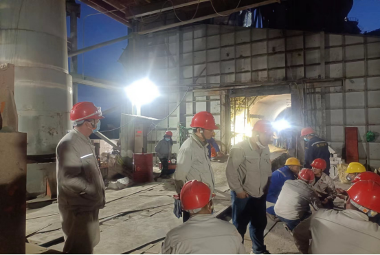 從9月14日00時(shí)00分到9月30日8時(shí)26分回轉(zhuǎn)窯點(diǎn)火升溫,再到10月1日00時(shí)40分回轉(zhuǎn)窯投料,資源循環(huán)公司圍繞回轉(zhuǎn)窯內(nèi)耐火材料更換施工、更換液壓擋輪、烘干破工藝管道、動(dòng)態(tài)選粉機(jī)內(nèi)耐磨涂層修復(fù),更換出口管道及膨脹節(jié),補(bǔ)焊殼體內(nèi)襯、篦冷機(jī)側(cè)墻、煙室斜坡、分解爐錐部、煙室縮口、三次風(fēng)管內(nèi)部、窯口澆注料的澆筑、1909提升機(jī)實(shí)施大修,更換整套板鏈、部分料斗、尾輪、全廠11臺(tái)變壓器除塵及試驗(yàn)、窯尾在線監(jiān)測(cè)系統(tǒng)安裝、調(diào)試等16個(gè)重點(diǎn)大修項(xiàng)目,歷時(shí)16天,在全體參檢工友們不辭辛苦、夜以繼日的拼搏奮斗下,按時(shí)間節(jié)點(diǎn)安全有序圓滿完成59項(xiàng)檢修項(xiàng)目,其中小修18項(xiàng)、中修25項(xiàng)、大修16項(xiàng),為圓滿實(shí)現(xiàn)“降本降耗,開源節(jié)支”活動(dòng)奠定了堅(jiān)實(shí)的運(yùn)行基礎(chǔ)。