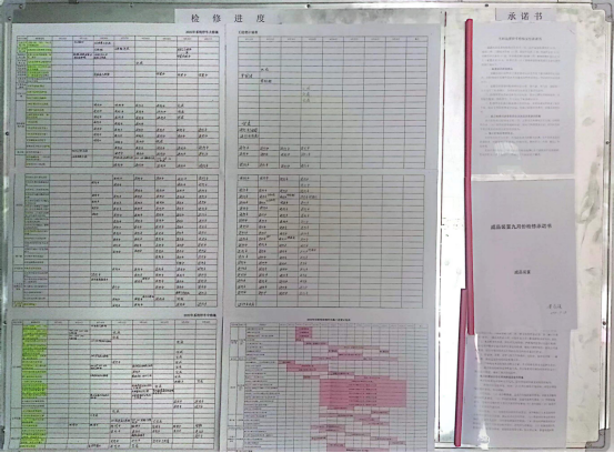 各生產(chǎn)裝置按照屬地管理進(jìn)一步優(yōu)化、全員大干,加班加點(diǎn),累計(jì)16天生料裝置共完成12個(gè)檢修項(xiàng)目,成品裝置共完成20個(gè)檢修項(xiàng)目,電儀裝置共完成27個(gè)檢修項(xiàng)目。