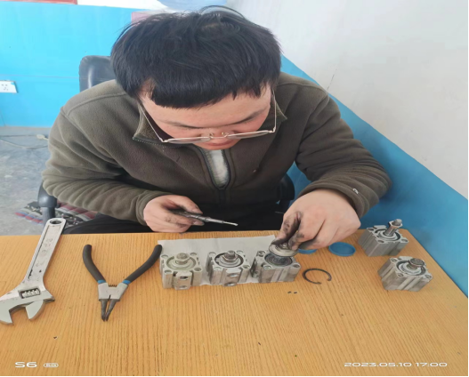 就拿水泥包裝機(jī)的小氣缸來說,它的作用就是控制包裝嘴在完成水泥包裝以后能順利的將水泥袋從包裝嘴上掉落!它就是典型的易損件,因為在水泥包裝現(xiàn)場,有一部分的灰塵是收塵器收不掉的,而包裝機(jī)屬于經(jīng)常運(yùn)轉(zhuǎn)設(shè)備,時間久了,小氣缸由于暴露在灰塵中,會有一部分灰塵通過電磁閥連接的氣道而進(jìn)入小氣缸內(nèi)部,造成內(nèi)部活動件的卡死,如果活動件卡死不動作,小氣缸就會壞掉,因此需要我們經(jīng)常維護(hù)保養(yǎng)和更換!近期,班組人員積極響應(yīng)公司的廢舊利用理念,將一些不好用和損壞的小氣缸收集一起,進(jìn)行拆卸清理,重新再組裝,經(jīng)過反復(fù)的試驗,變成小氣缸的備件,這樣的一個小小舉動,其實為公司節(jié)約了一小部分成本,如果長期這樣,大家一塊行動起來,每年為公司節(jié)約的成本是顯著的,也是讓人內(nèi)心激動的。