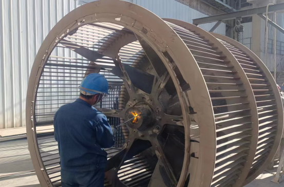 走近檢修現(xiàn)場的每一層框架,會(huì)有一種“未見其人,先聞其聲”的感覺。錘子的敲擊聲、檢修負(fù)責(zé)人的交底聲、噼里啪啦的風(fēng)聲,聲聲入耳,像一首和諧的樂章。風(fēng)大,高處作業(yè)不能進(jìn)行,就轉(zhuǎn)至地面隱蔽處作業(yè);下雨,室外作業(yè)不能進(jìn)行,就轉(zhuǎn)到廠房、塔架框架里,不管自然條件如何變化,檢修作業(yè),雷打不動(dòng)。