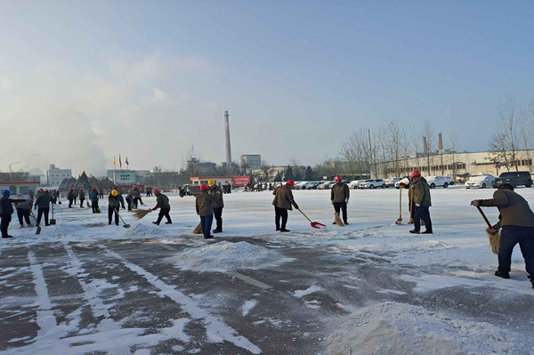 在除雪過程中,領(lǐng)導(dǎo)們始終與員工們并肩作戰(zhàn),他們不僅是指揮者,更是參與者。當(dāng)遇到積雪結(jié)冰難以清理時,領(lǐng)導(dǎo)們與員工們共同商議對策,現(xiàn)場調(diào)配資源。他們親自上陣,與員工們一起喊著口號,齊心協(xié)力將積雪堆攻克。