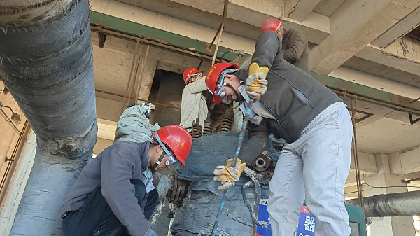 本次檢修任務(wù)繁重,但檢修人員卻干勁十足。他們有的拆卸螺栓,有的進(jìn)行吊裝,有的開展焊接……他們配合默契,動作精準(zhǔn),工作井然有序。他們以勇于擔(dān)當(dāng)?shù)呢?zé)任感和時不我待的使命感攻克難關(guān),用實際行動勾勒出了一幅幅彰顯勞動之美的畫卷。