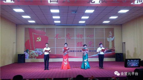 會(huì)后,以“不忘初心跟黨走”為主題,舉辦了慶祝建黨97周年文藝演出,演出圍繞“頌歌獻(xiàn)給黨”這一主要演出內(nèi)容,以歌舞、大合唱、詩朗誦、四重唱為主要表現(xiàn)形式,還自編創(chuàng)作了小品《我想入黨》,音樂快板《幸福金昱元》,營(yíng)造了歌頌黨、歌頌人民、歌頌改革開放和企業(yè)發(fā)展取得的偉大成就,暢想新時(shí)代、中國夢(mèng)。