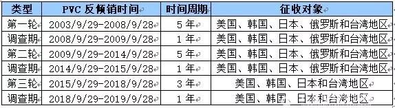 表3 國(guó)內(nèi)PVC歷次反傾銷政策