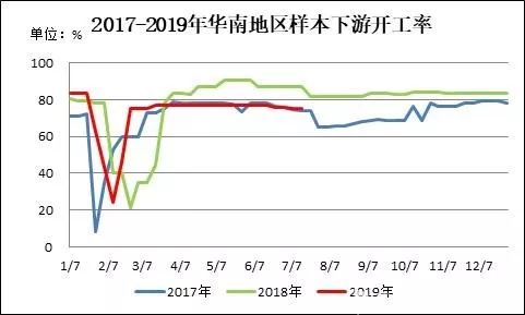 圖7 2017-2019年華南地區(qū)樣本下游開工率