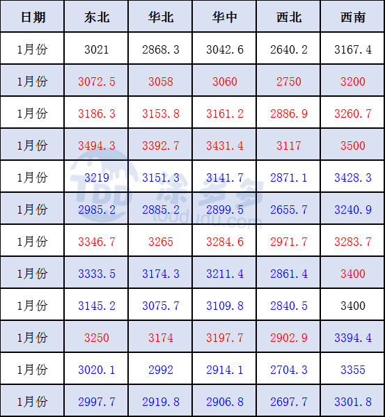 1.3 2019年中國(guó)聚氯乙烯PVC各地區(qū)市場(chǎng)月均價(jià)