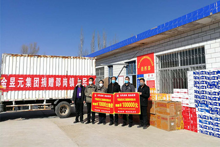 16日上午,春寒料峭,集團(tuán)公司黨委副書記兼工會主席王立軍、工會副主席李新、集團(tuán)公司辦公室主任朱公平等將10萬元捐款和價值1萬元物資捐贈給邵崗鎮(zhèn)政府時,青銅峽市副市長張克寧、邵崗鎮(zhèn)鎮(zhèn)長梁才等同志向金昱元集團(tuán)表示感謝。