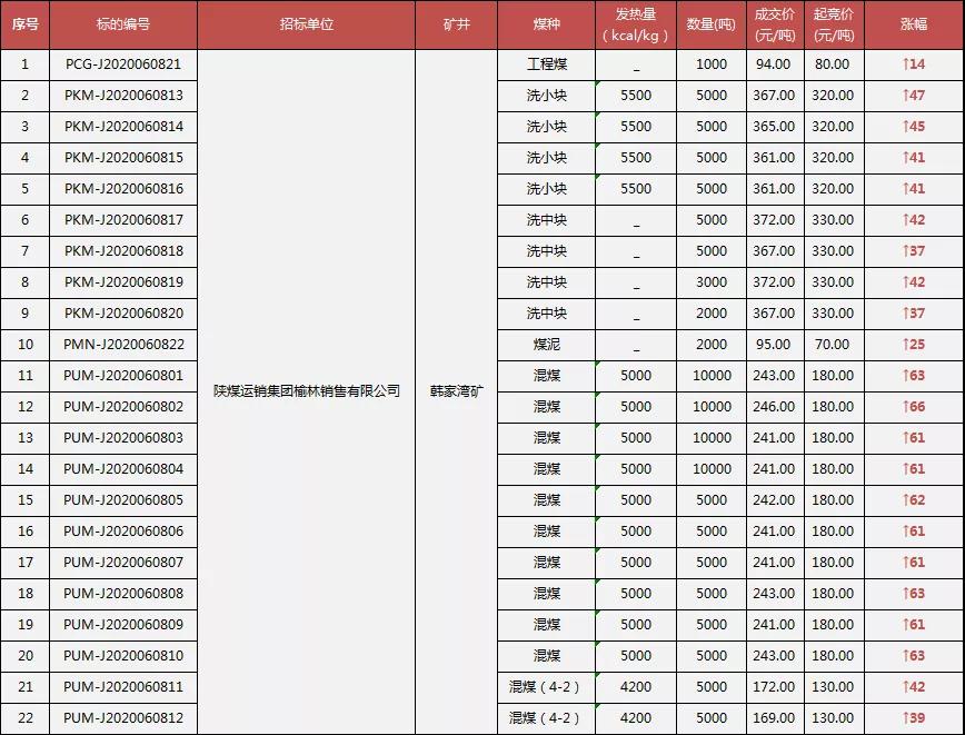 昨日,榆林地區(qū)陜煤旗下六大煤礦最新競(jìng)價(jià)結(jié)果公布,成交價(jià)最高漲幅達(dá)到32元/噸。