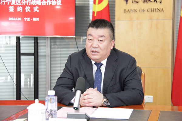 中國銀行寧夏分行行長黨委書記、行長肖達(dá)致辭。他對金昱元化工集團(tuán)和中國銀行寧夏分行產(chǎn)業(yè)鏈發(fā)展項目戰(zhàn)略合作協(xié)議簽約表示熱烈祝賀,他表示,簽約后,中國銀行寧夏分行將一如既往,盡銀行所能,為金昱元化工集團(tuán)項目建設(shè)給予資金上的大力支持,并預(yù)祝簽約圓滿成功。