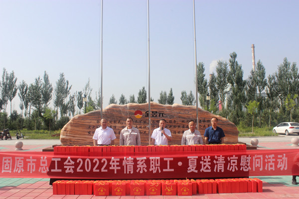 7月8日上午,固原市總工會(huì)常務(wù)副主席王志賢、開(kāi)發(fā)區(qū)總工會(huì)常務(wù)副主席羅天、開(kāi)發(fā)區(qū)管委會(huì)規(guī)劃建設(shè)局副局長(zhǎng)海濱一行,蒞臨寧夏金昱元化工集團(tuán)股份有限公司固原片區(qū),為堅(jiān)守在生產(chǎn)一線(xiàn)的員工送來(lái)防暑降溫用品。