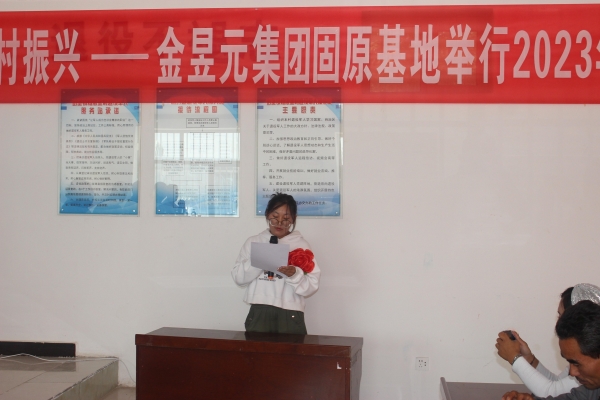 彭堡鎮(zhèn)黨委書記范亞寧、人大主席呂維兵,原州區(qū)綜合執(zhí)法局駐村工作組負(fù)責(zé)人王鑫,楊忠堡村書記童正武;金昱元化工集團(tuán)黨委副書記、工會主席尚興,集團(tuán)公司副總裁、固原基地黨委書記王立軍,固原基地工會主席劉志江、女工主任張靜出席儀式。