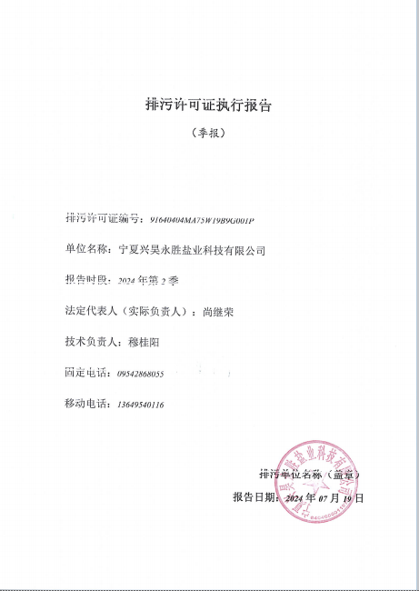 寧夏興昊永勝鹽業(yè)科技有限公司2024年第2季度排污許可執(zhí)行報(bào)告