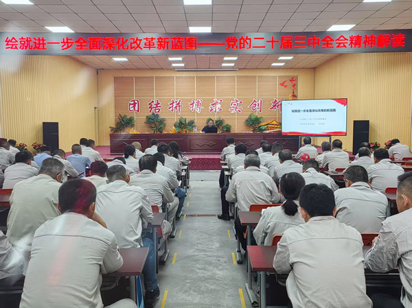 為深入學(xué)習(xí)貫徹黨的二十屆三中全會(huì)精神,切實(shí)把思想和行動(dòng)統(tǒng)一到全會(huì)決策部署上,促使黨員干部認(rèn)真領(lǐng)會(huì)習(xí)近平總書記關(guān)于全面深化改革新思想、新觀點(diǎn)、新論斷,深刻把握改革主題、重大原則和舉措,6月6日,寧夏金昱元化工集團(tuán)股份有限公司黨委組織開展“繪就進(jìn)一步全面深化改革新藍(lán)圖——黨的二十屆三中全會(huì)精神解讀”主題黨課學(xué)習(xí)。本次黨課由中共吳忠市委黨校鄭自明教授主講。